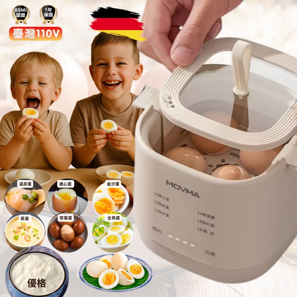 MOVMA 德國設計蒸蛋器【台灣版】:六種模式(溏心、溫泉、水煮、蒸蛋、茶葉蛋、優格),