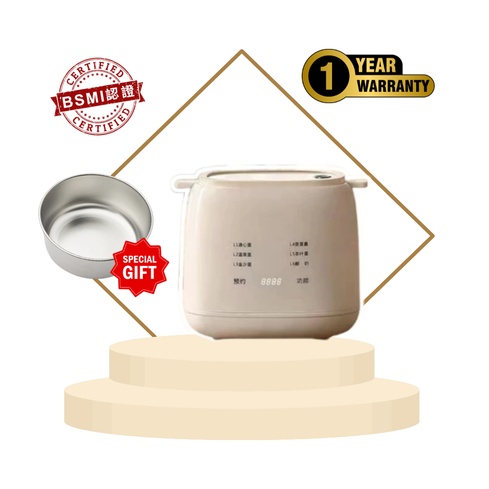 容量:蛋架 4 顆/蒸碗 5 顆;隨附 1 m 合規電源線(BSMI),BSMI:R3G334。功能亮點:內建 6 模式(溏心、溫泉、水煮、蒸蛋、茶葉蛋、優格),