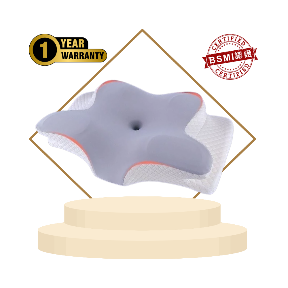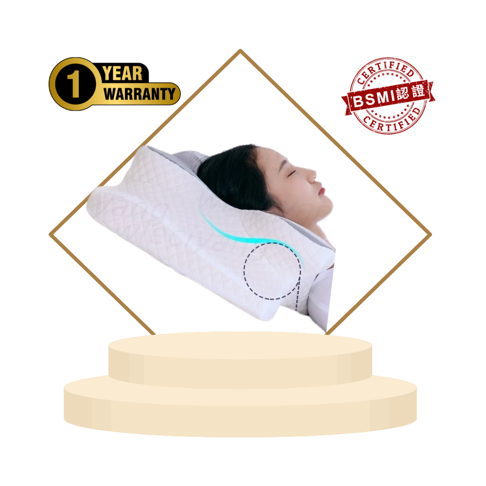 採用人體工學蝶翼造型設計,提供 11 cm 與 13 cm 雙高度選擇,搭配三段式曲線完美貼合頸部與肩部。