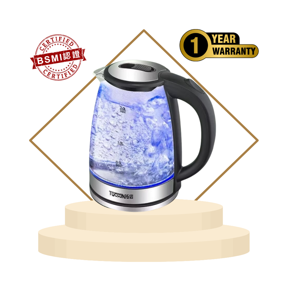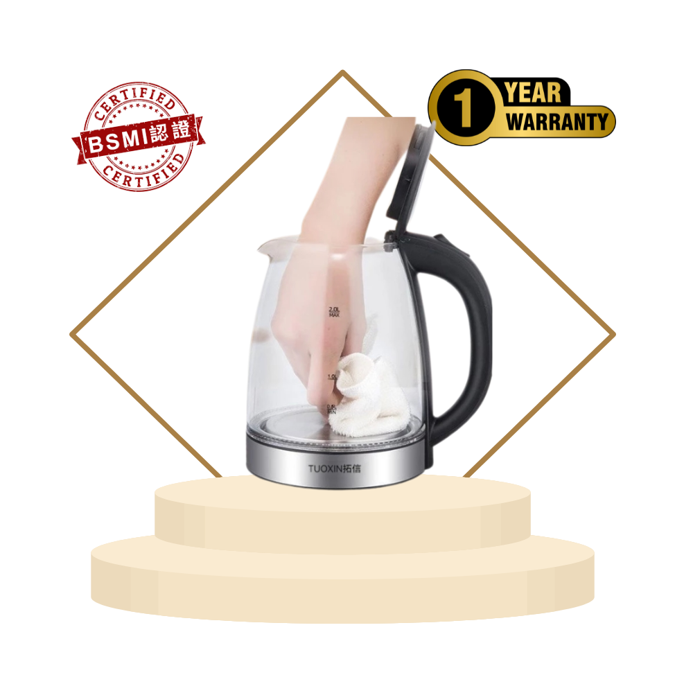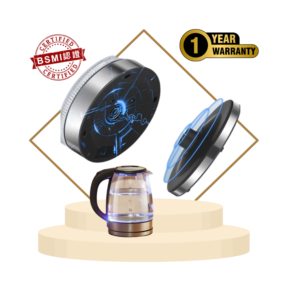 採用 高硼耐熱玻璃壺身,搭配 304 不鏽鋼發熱盤與上蓋內襯,兼具美觀與實用,煮水過程可視、潔淨安全。