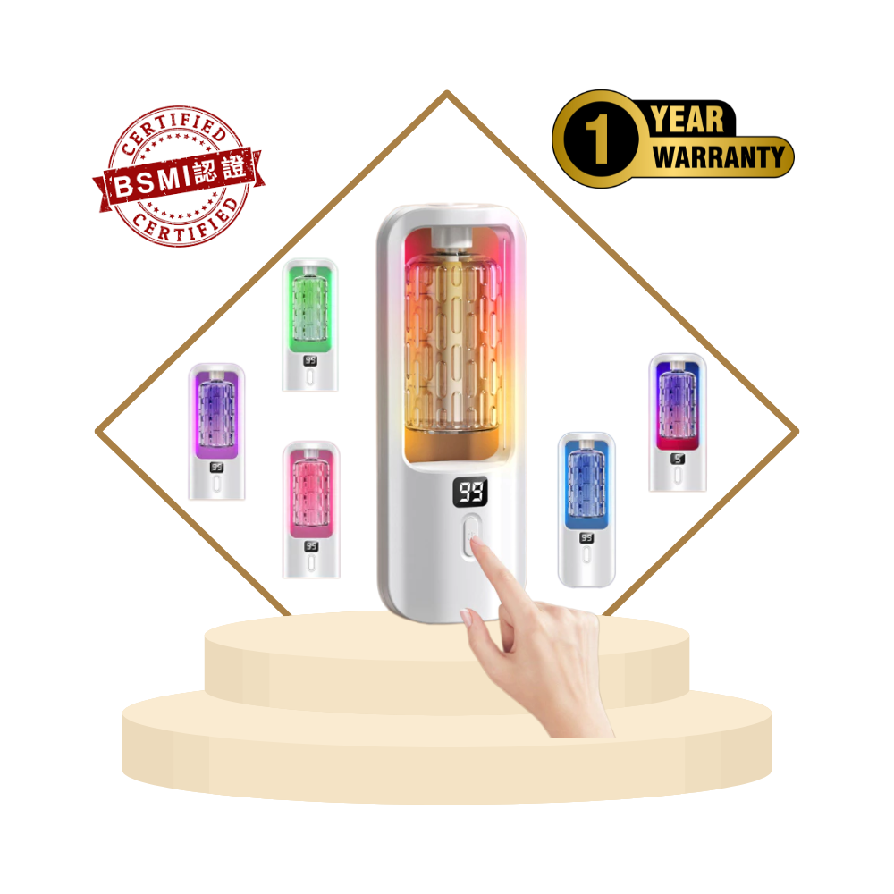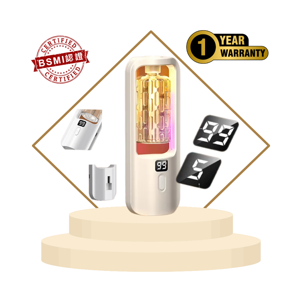 智能香薰機 PW3——超聲波霧化、1200mAh 可充電電池(USB)、50ml 精油倉與數控螢幕「電量+檔位」雙顯;無痕壁掛快取快裝.